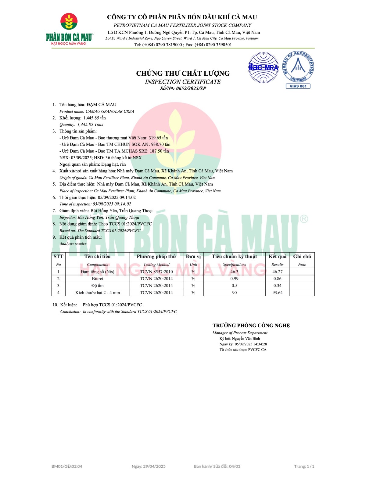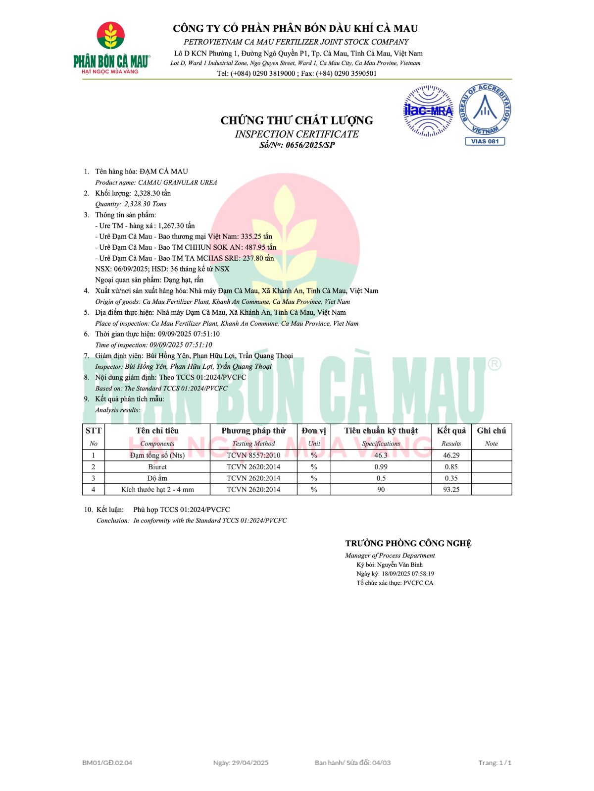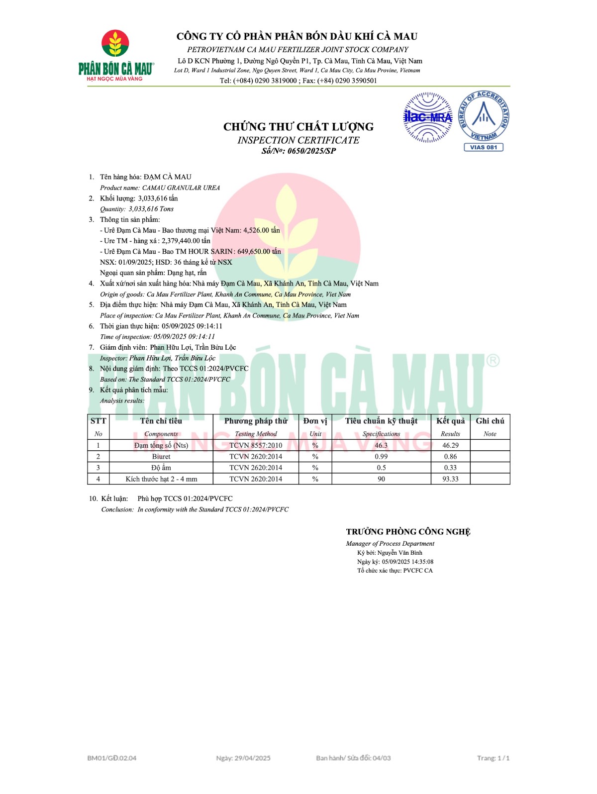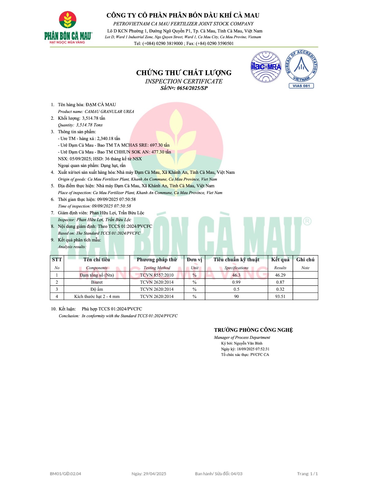 At PVCFC – Ca Mau Fertilizer, product quality is always our top priority. We are committed to providing fertilizers that meet international standards, are stable, and safe for crops – rigorously tested at every stage of production. Not only do we focus on quality, but PVCFC also emphasizes the development of sustainable agricultural solutions, helping farmers use resources effectively and optimize yields. This is the sustainable promise that Ca Mau Fertilizer always upholds – for a green and long-lasting agricultural future.